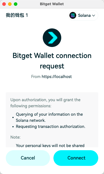 当在 Bitget Wallet App 中运行 DApp 或在安装了 Chrome 扩展的 Chrome 浏览器中时,您可以访问全局对象 window.bitkeep.solana 来进行后续的 API 调用。